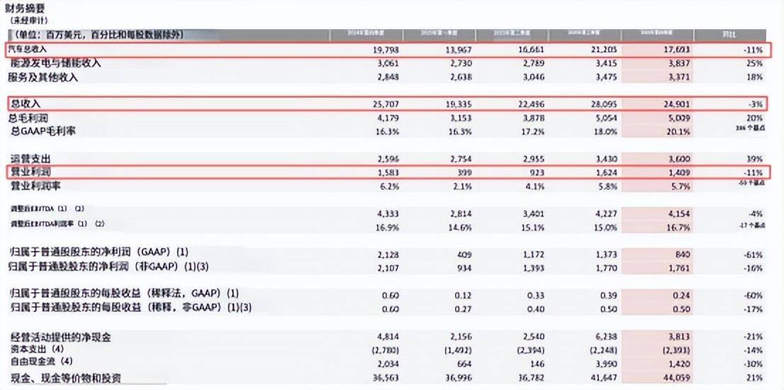 第四季度特斯拉汽车收入同比下降11%,第四季度营收同比下降3%,第四季度营业利润同比下降11%。