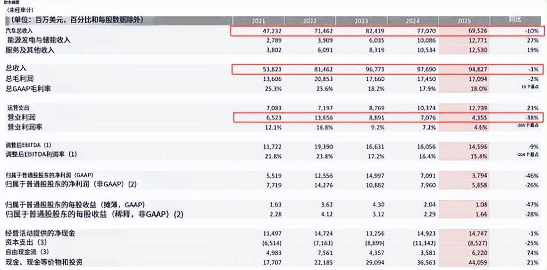2025年第四季度财报公布后,特斯拉的账面上留下了一组耐人寻味的数字。